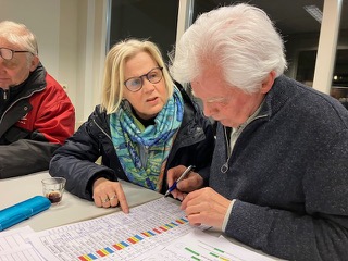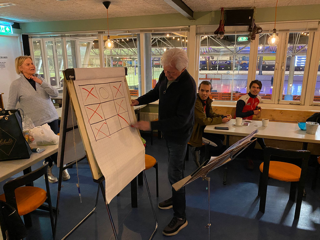 Na een dankwoord aan Nicole en de vele broodnodige vrijwilligers, leidde de uitleg mbt de “Matrix” tot enige hilariteit. Een enkeling riep halverwege wanhopig: “Ik snap er niks van!”